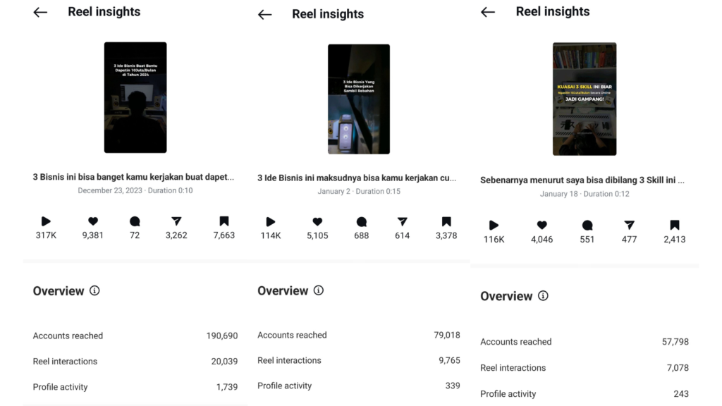 Coba Cek Insight Beberapa Postingan saya :