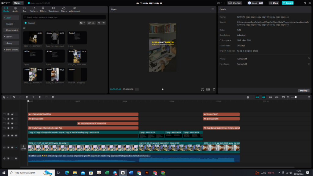 Nah kemudian buat ngedit kontennya, saya pake Capcut yaa untuk Video